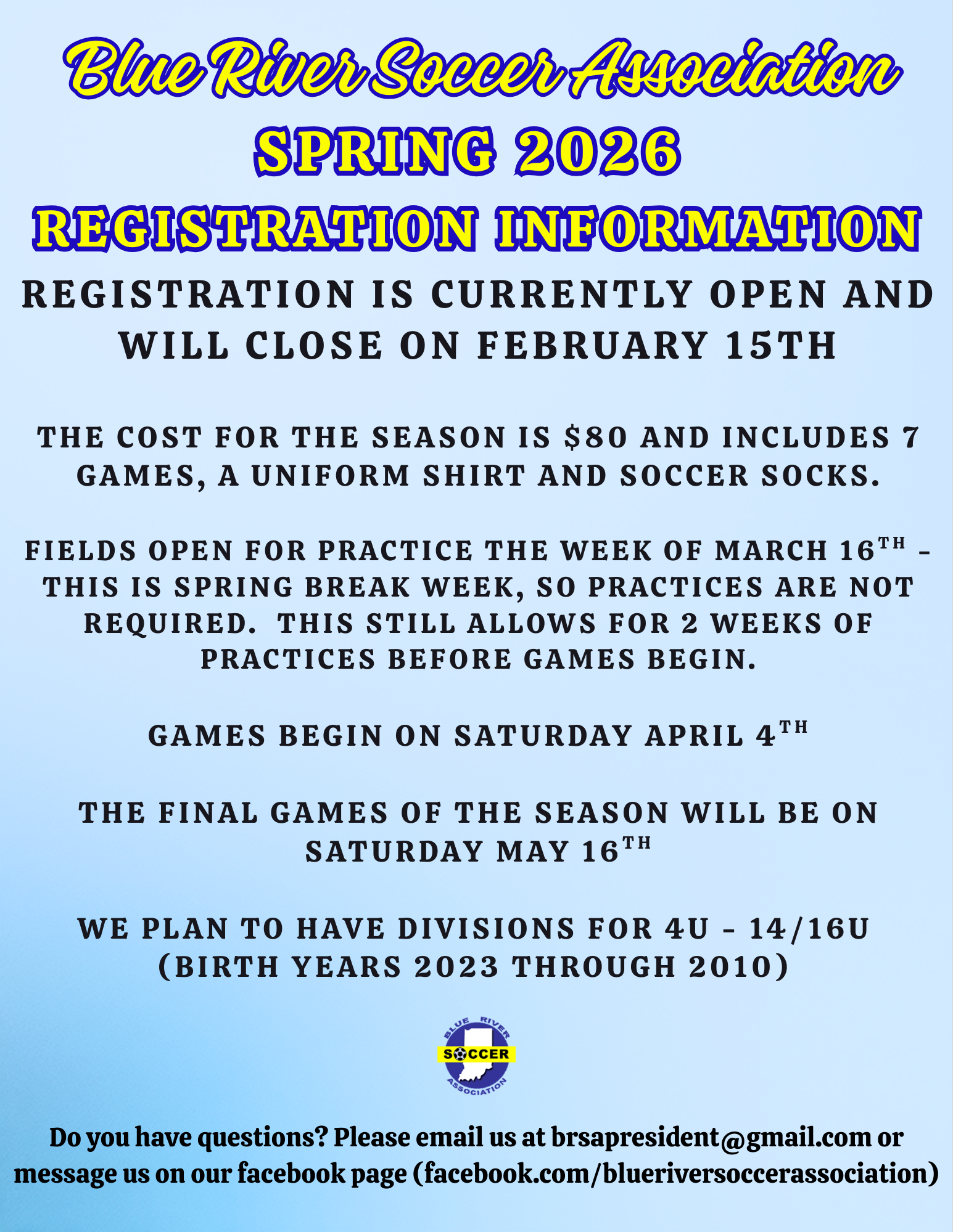 Blue River Soccer Association PO Box 683 Shelbyville, Indiana 46176